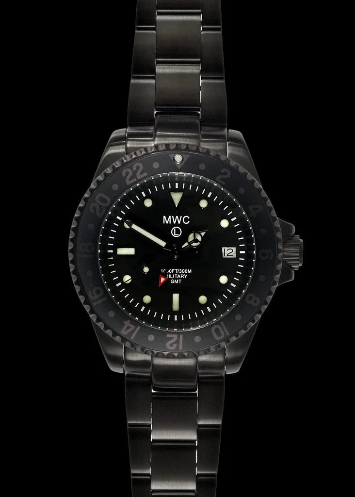 MWC Classic Watch - GMT Dual Timezone PVD Military Watch on Matching Steel Bracelet